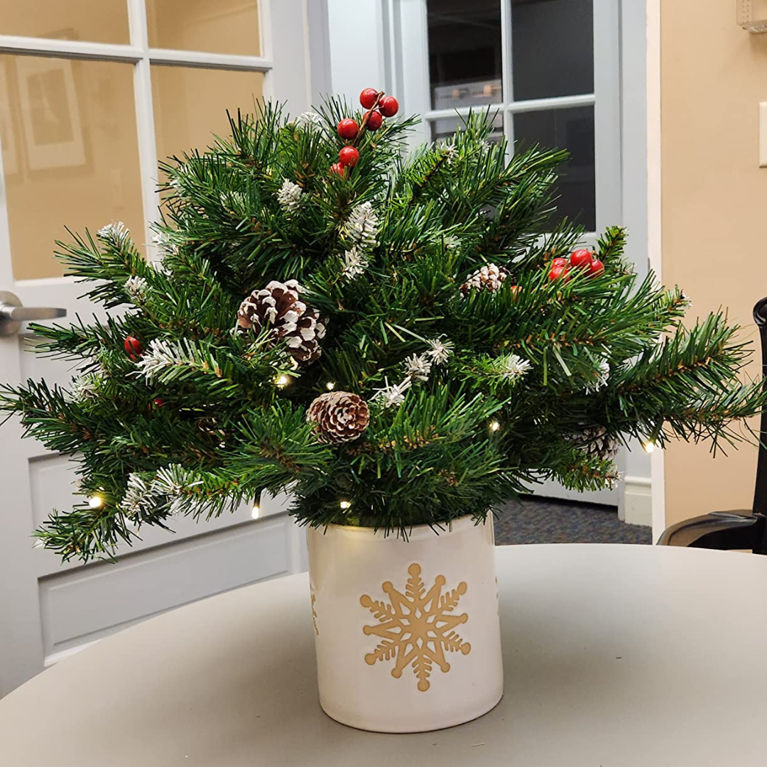 Set the tree into your favorite planter or spot—no arranging, no shaping, no mess. Just drop it in and it instantly looks full and festive.