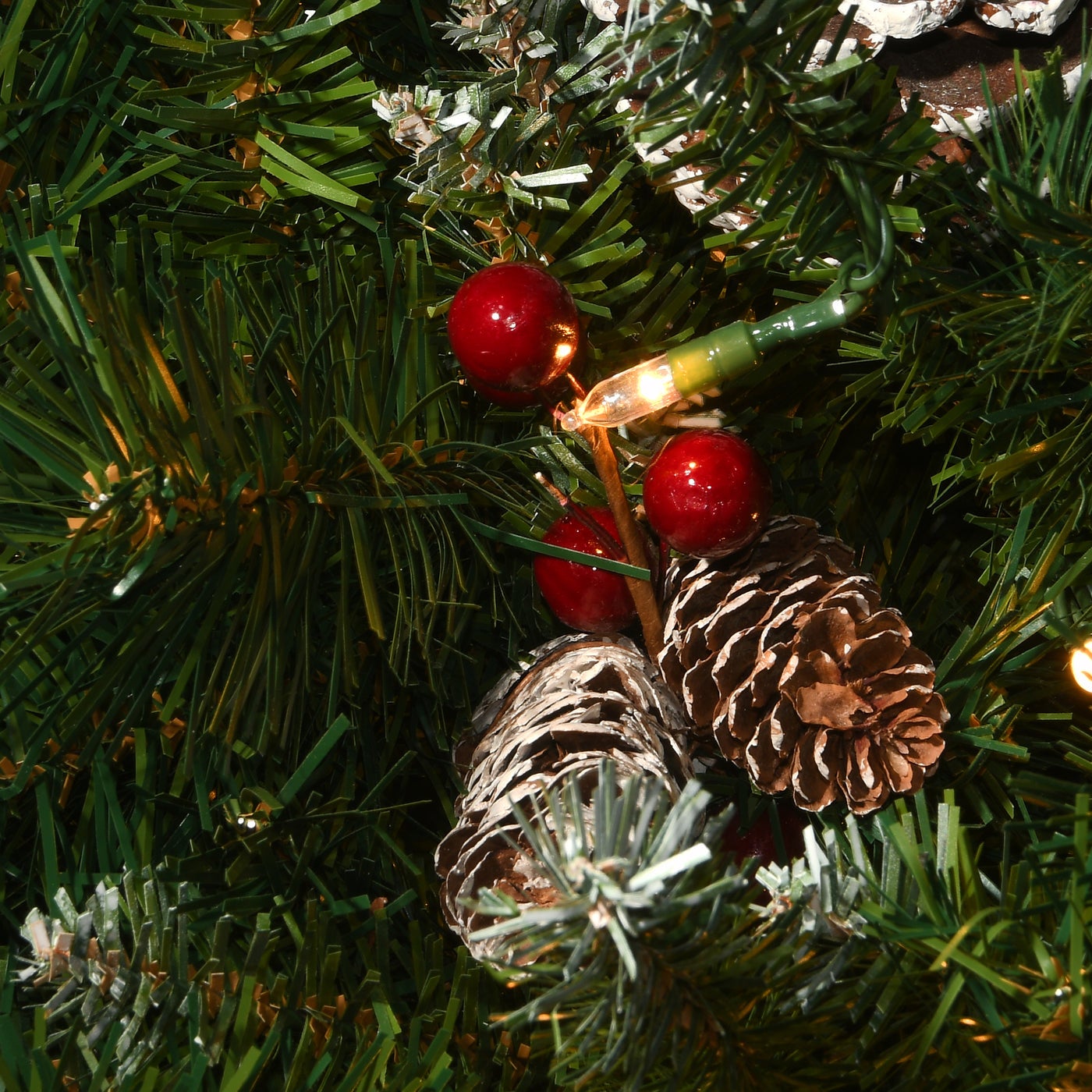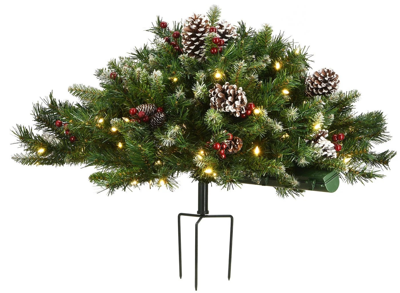Crafted with lifelike evergreen branches and built to resist fading, crushing, wind, snow, and rain. It stays full, green, and gorgeous from the first frost to New Year’s Day.